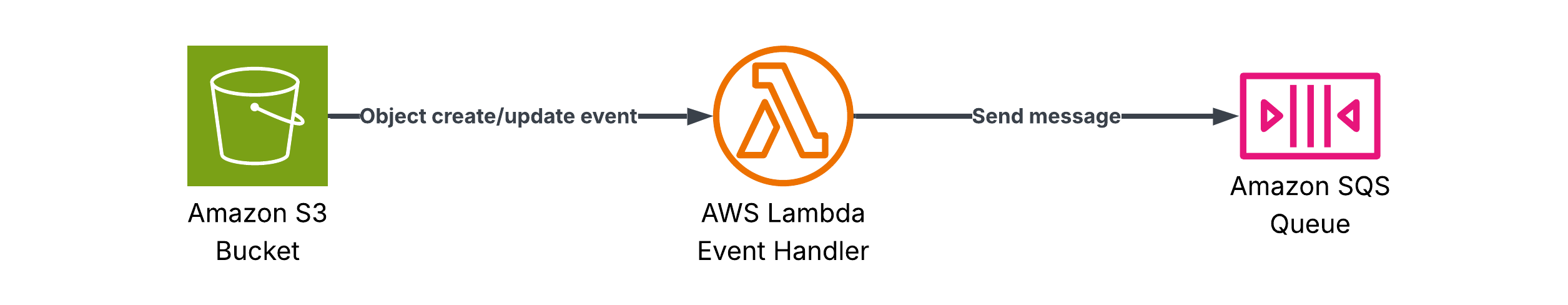 A Lambda function that receives S3 object-creation events, transforms each record into a typed ProcessedMessage, and publishes it to an SQS queue.
